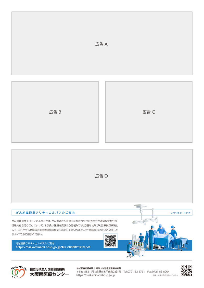 大阪南医療センター広報誌「南窓」の広告掲載ページのサンプルイメージとなります。